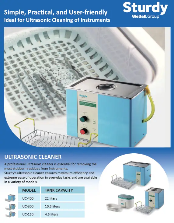 The Sturdy Ultrasonic Cleaner is a professional-grade cleaning solution designed to remove the most stubborn residues from instruments with maximum efficiency. Built for simplicity and practicality, this ultrasonic cleaner offers extreme ease of operation for everyday tasks. Available in three versatile models to suit different workloads, the Sturdy Ultrasonic Cleaner is ideal for ultrasonic cleaning of instruments in medical, dental, laboratory, and industrial settings. Sturdy construction ensures long-lasting reliability, making it a trusted choice for professionals.